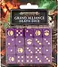 The dice are a deep purple color, with a bone white colored ink. The '6' depicts a skull representing the Grand Alliance of Death!