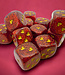 Contains 12 Glitter Ruby 16mm d6s with gold Heart pips (XH6005) in 02805 display case with lid and foam square