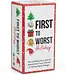 FIRST TO WORST is the ultimate multi-generational game of polarizing priorities! In this fun collaborative game, players try to get into each others' heads by guessing how fellow players rank a variety of topics in priority order of 1 through 5. Read more..