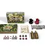 Custom-designed beechwood board, 2 dice catapults, 21 meeples (20 human, 1 bovine), 4 dice, 1 doubling cube, 30 checkers, and rules for THREE games.