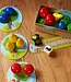 The sturdy fruit basket provides another game on its own! The solid wooden fruit can be used for the game (with game boards and die) and also as pretend play food for your play kitchen.