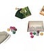 The game includes seven types of dice: minotaurs, griffins, mermaids and four types of numerical dice. The game lasts from 6 to 8 rounds, depending on the number of players, and at each turn each player draws from the bag a number of dice equal to the current hand, e.g. five dice for the fifth hand, then places them behind his or her folding screen. After collecting their dice, each player simultaneously bids the number of tricks they think they can win during the round.
