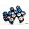 Set of twelve 16mm D6 dice. These muted blue six-sided dice are accented with copper pips. 16mm is considered the standard size for dice. Comes in a clear plastic display case.