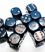 Set of twelve 16mm D6 dice. These muted blue six-sided dice are accented with copper pips. 16mm is considered the standard size for dice. Comes in a clear plastic display case. Read more..