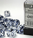 Set of twelve 16mm D6 dice. These clear six-sided dice swirled with wisps of black are accented with white pips. 16mm is considered the standard size for dice. Comes in a clear plastic display case. Read more..