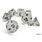 This set contains 7 Frosted Clear dice with black numbers with the following shapes:
