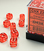 Set of thirty-six 12mm D6 dice. These orange six-sided dice are accented with white pips. 12mm is sm..