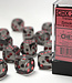 Set of twelve 16mm D6 dice. These translucent grey six-sided dice are accented with red pips. 16mm is considered the standard size for dice. Comes in a clear plastic display case. Read more..