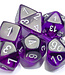 Set of 7 translucent purple polyhedral dice with white lettering. Seven dice sets are perfect for m..